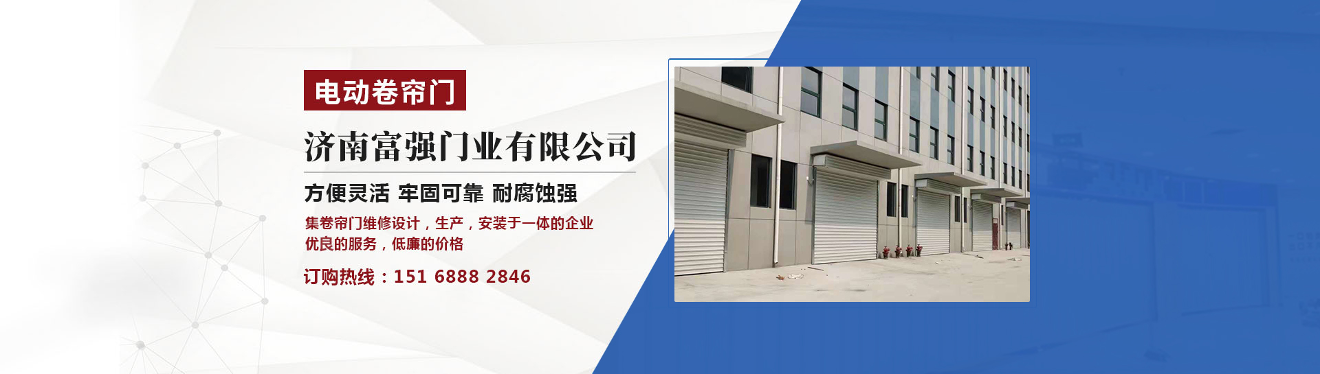 濟(jì)南富強(qiáng)門業(yè)是一家集研制、生產(chǎn)加工、銷售安裝于一體的卷簾門企業(yè),具有開發(fā)、設(shè)計(jì)、生產(chǎn)、銷售,安裝及維修服務(wù)的綜合配套能力。主要產(chǎn)品:手動(dòng)卷簾門,電動(dòng)卷簾門,、鋁合金卷簾門、、遙控卷簾門、手動(dòng)車庫門、遙控車庫門,無框玻璃門等各種型材樣式的卷簾門安裝裝飾工程。公司堅(jiān)持選用好的鋼材為客戶制作濟(jì)南卷簾門產(chǎn)品。公司堅(jiān)持品質(zhì)做工不打折的公司理念,堅(jiān)持選用好的鋼材為客戶提供好的產(chǎn)品。產(chǎn)品做工精,材料質(zhì)量好,是您選用濟(jì)南卷簾門產(chǎn)品的選擇。公司自創(chuàng)建以來,努力創(chuàng)...